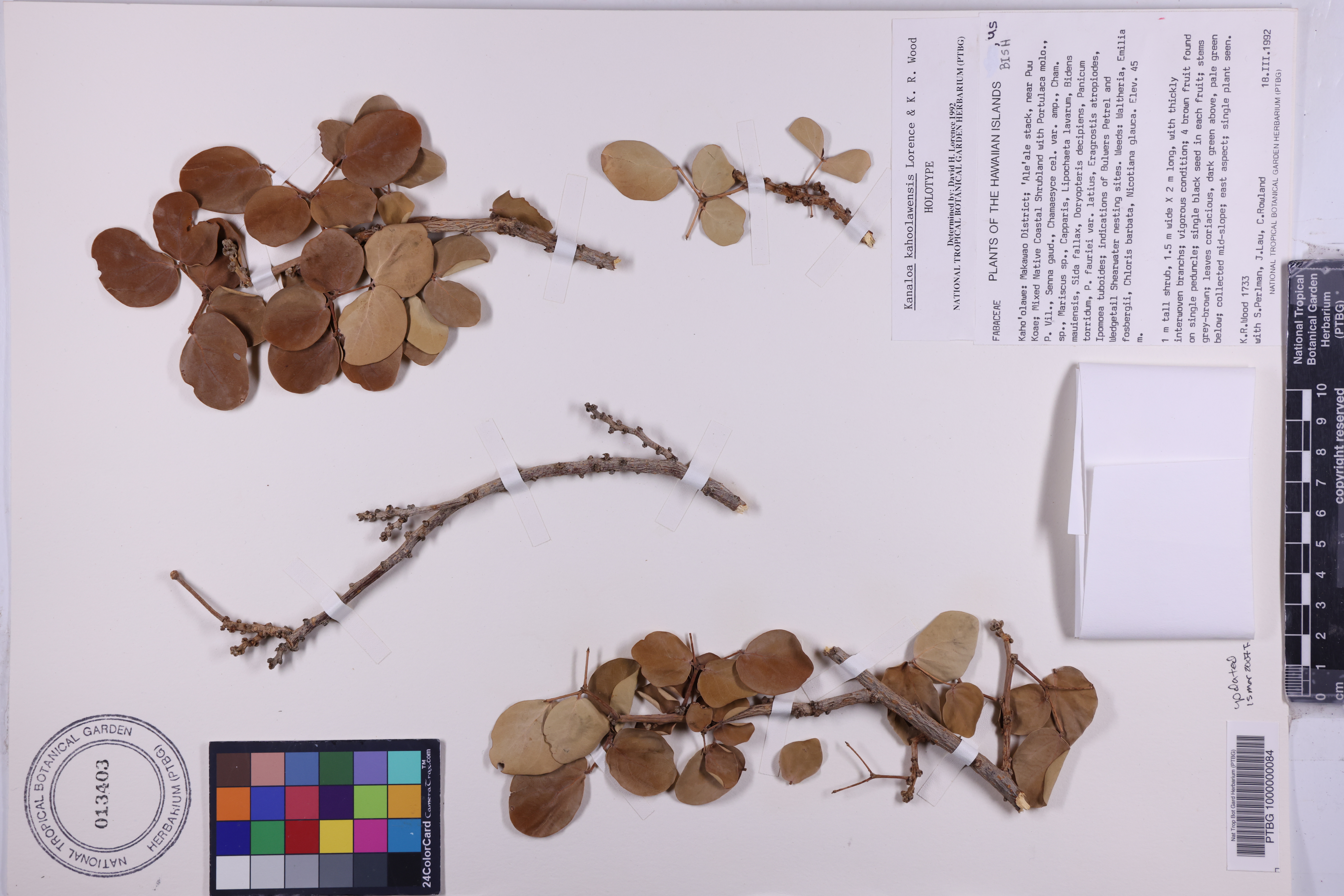 With Portulaca molo., P. Vil., Senna gaud., Chamaesyce cel. var. amp., Cham. sp., Mariscus sp., Capparis, Lipochaeta lavarum, Bide ns mauiensis, Sida fallax, Doryopteris decipiens, Panicum torridum, P. fauriei var. latius, Eragrostis atropiodes, Ipomoea tuboides. Indications of Bulwers Petrel and wedgetail shearwater nesting sites.