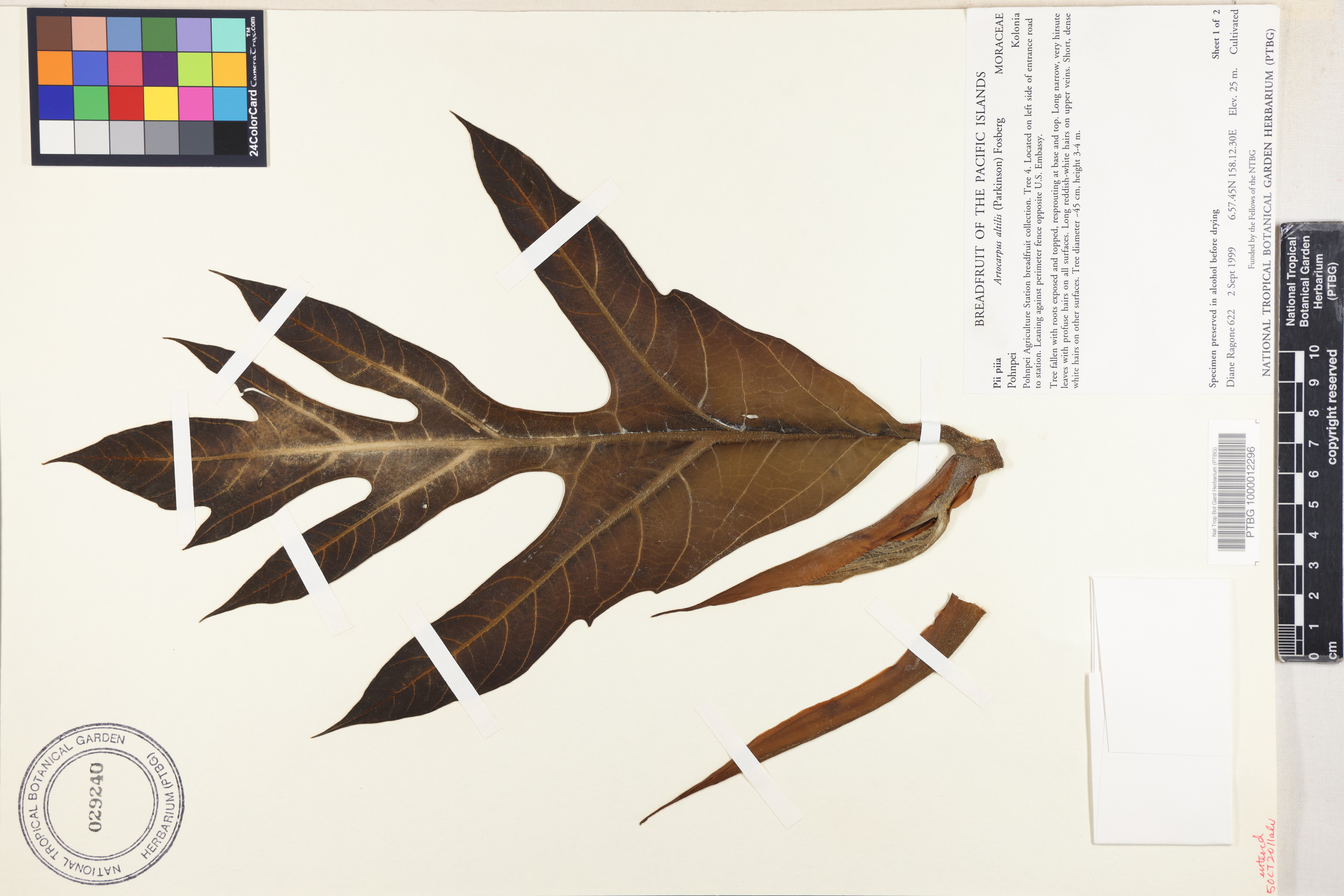 Kolonia. Pohnpei Agriculture Station breadfruit collection. Tree 4. Located on left side of entrance road to station. Leaning against perimeter fence opposite U.S. Embassy.