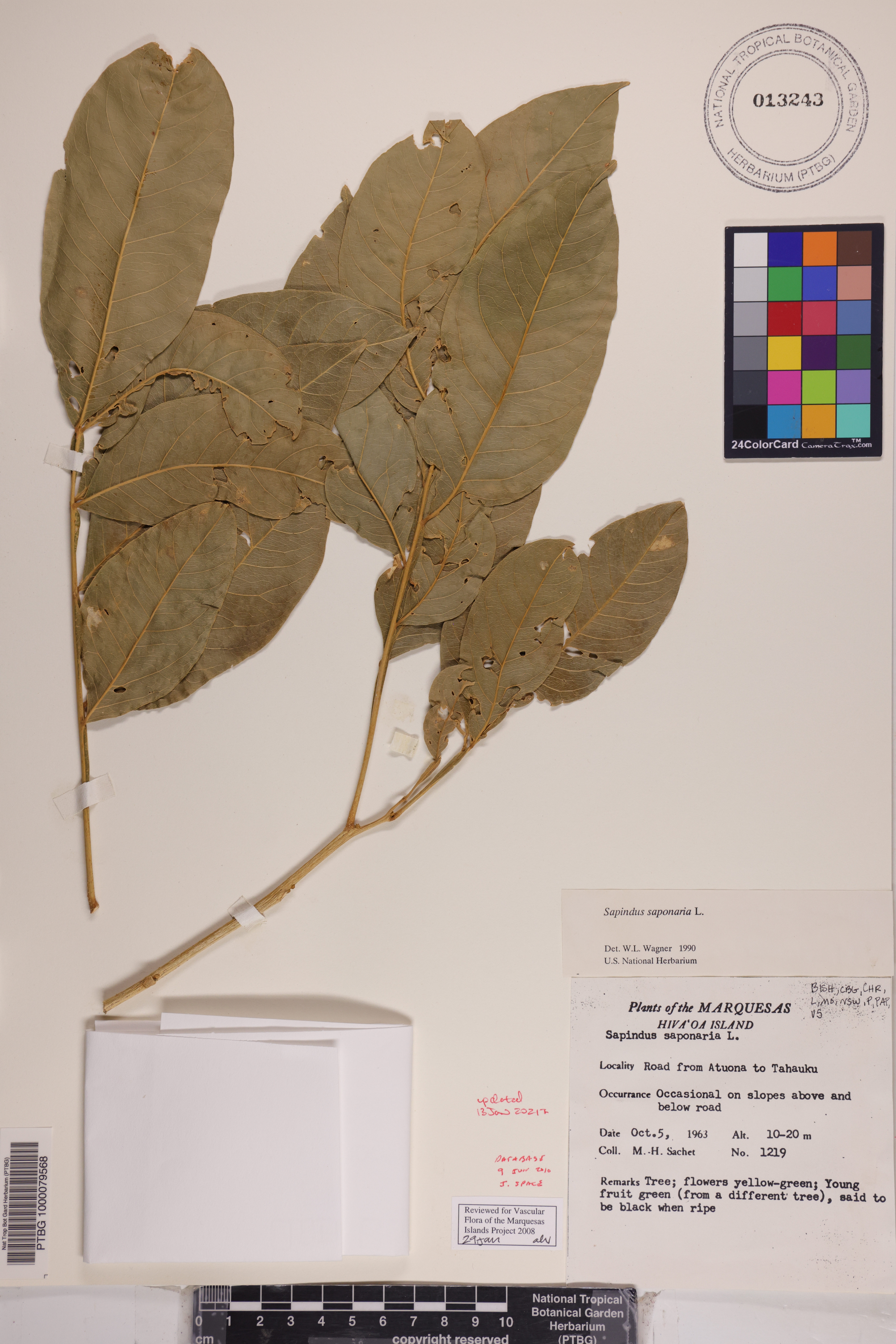 Tree; flowers yellow-green; young fruit green (from a different tree), said to be black when ripe.