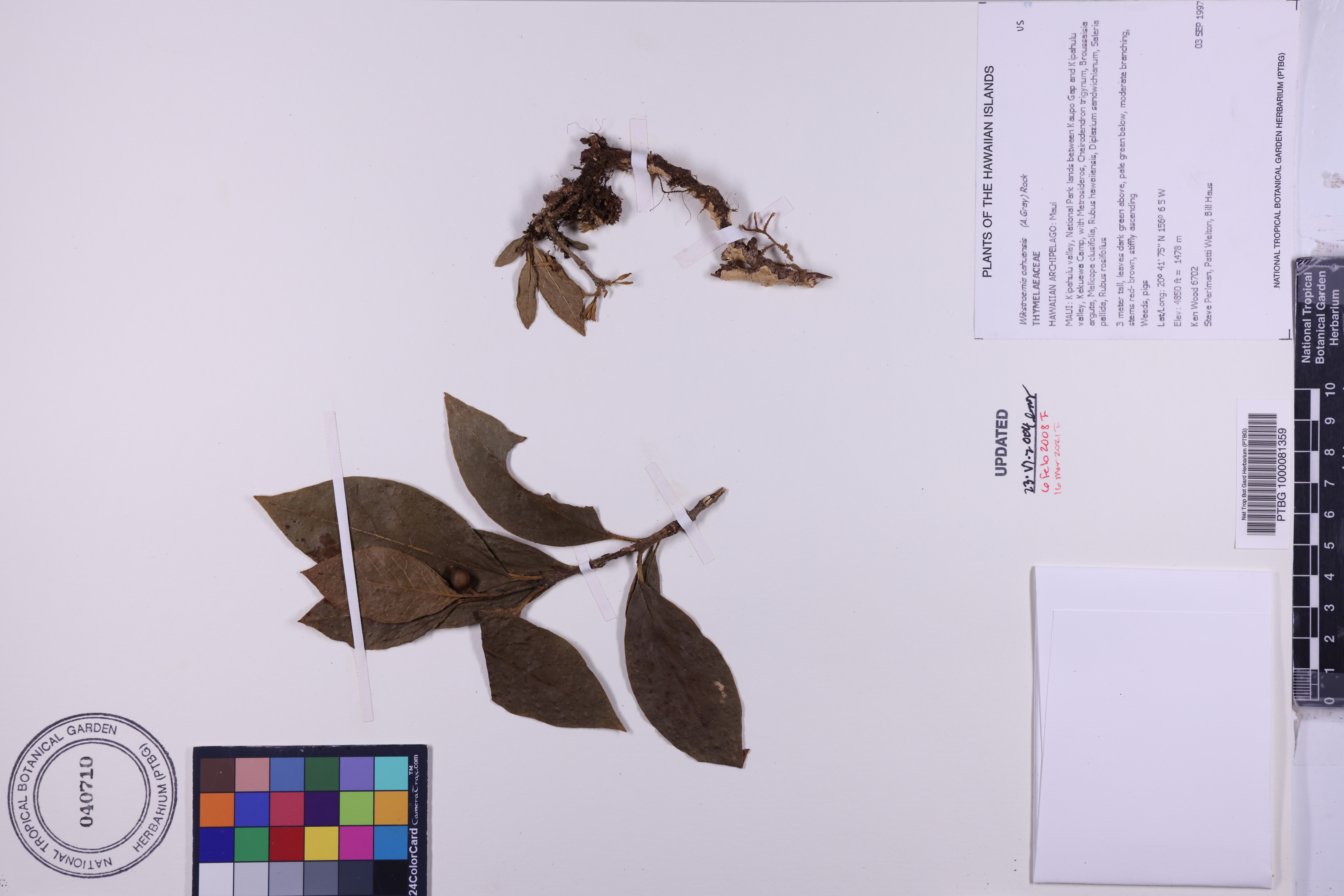 with Metrosideros, Cheirodendron trigynum, Broussaisia arguta, Melicope clusifolia, Rubus hawaiiensis, Diplazium sandwichianum, Saleria pallida, Rubus rosifolius