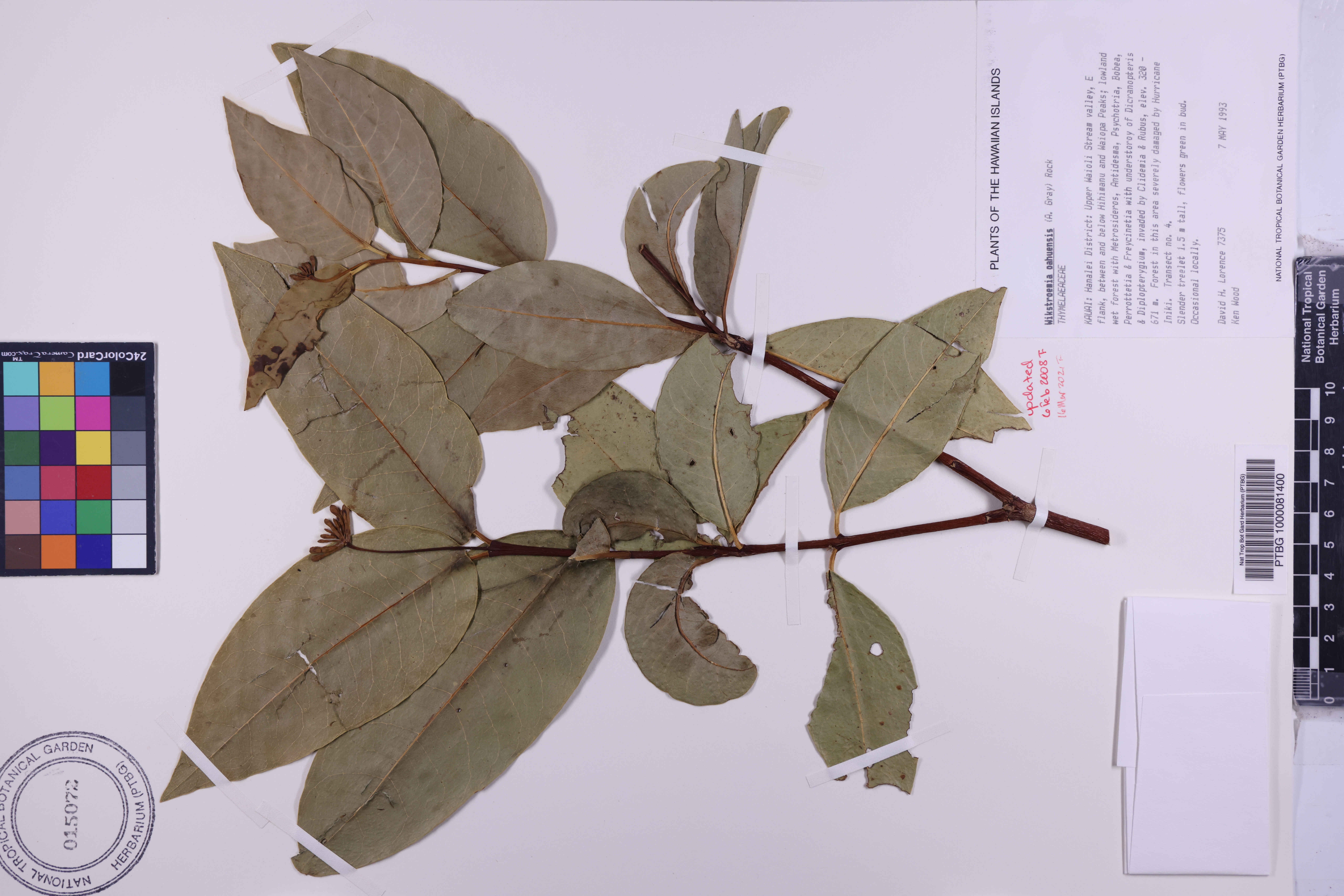 with Metrosideros, Antidesma, Psychotria, Bobea, Perrottetia & Freycinetia with understoroy of Dicranopteris & Diplopterygium, invaded by Clidemia & Rubus