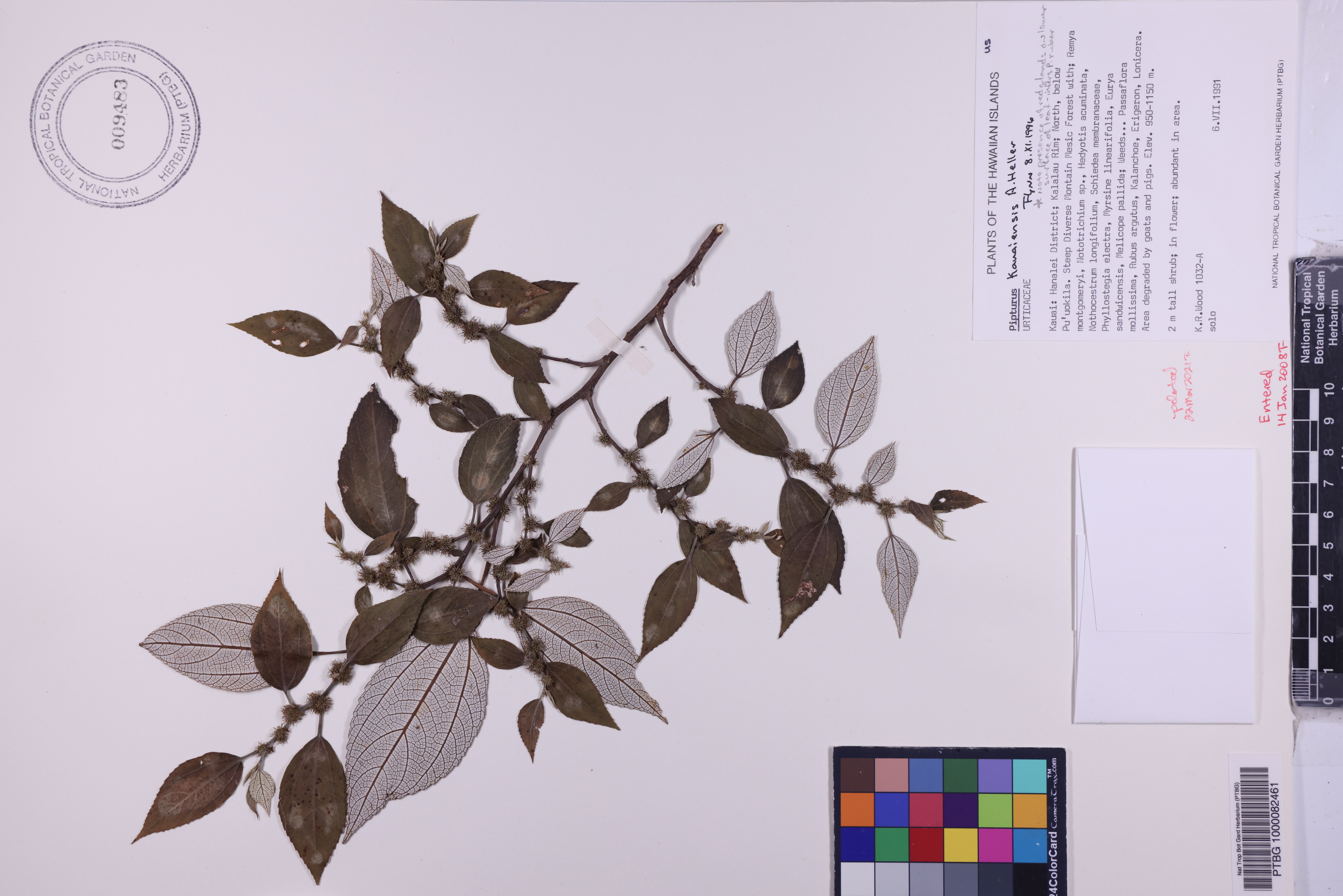 [Note presence of red glands on lower surface of leaf-infers Pipturus ruber]