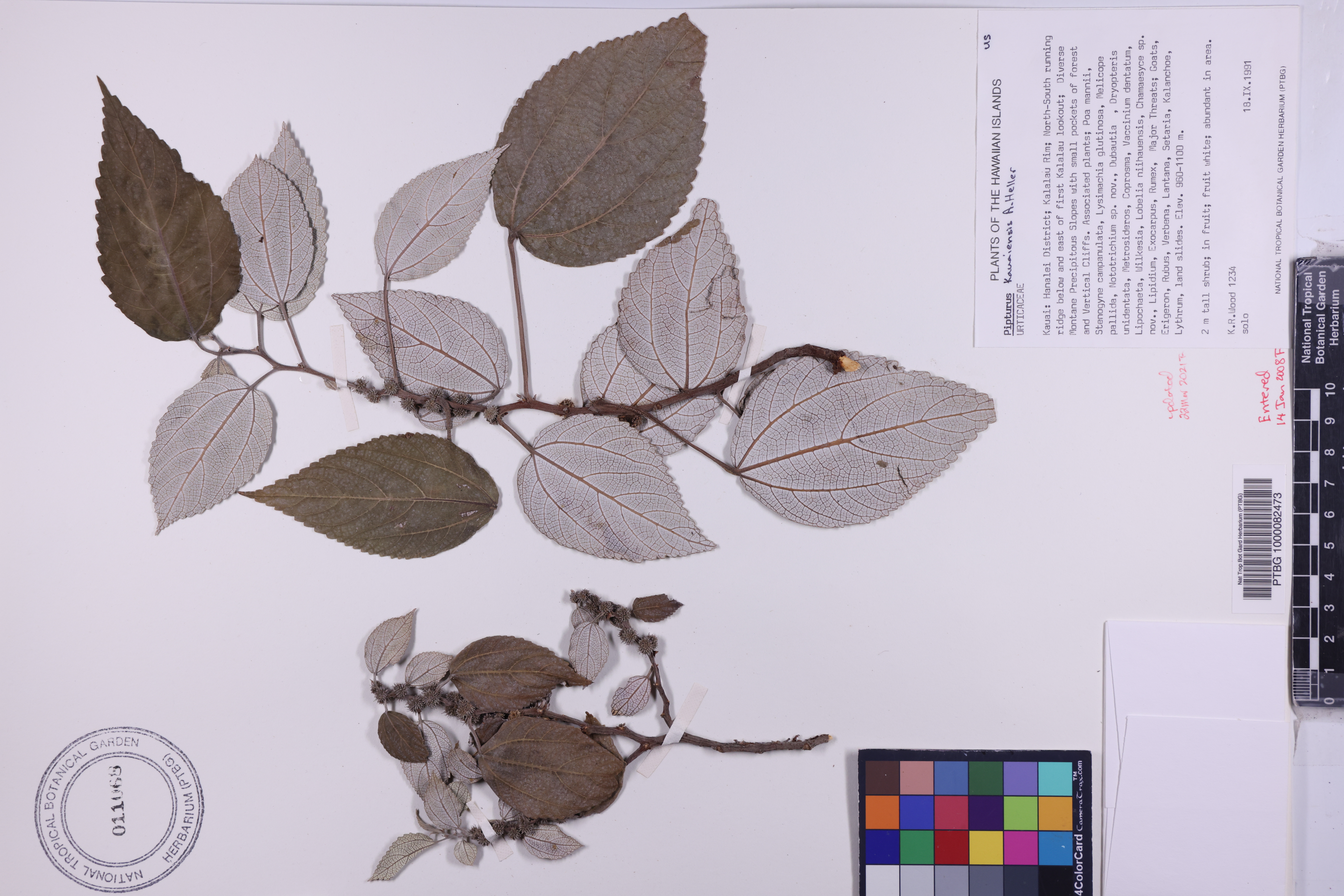 Assoc. plants: Poa mannii, Stenogyne campanulata, Lysimachia glutinosa, Melicope pallida, Nototrichium sp. nov., Dubautia, Dryopteris unidentata, Metrosideros, Coprosma, Vaccinium dentatum, Lipochaeta, Wilkesia, Lobelia niihauensis, Chamaesyce sp. nov., Lepidium, Exocarpus, Rumex.
