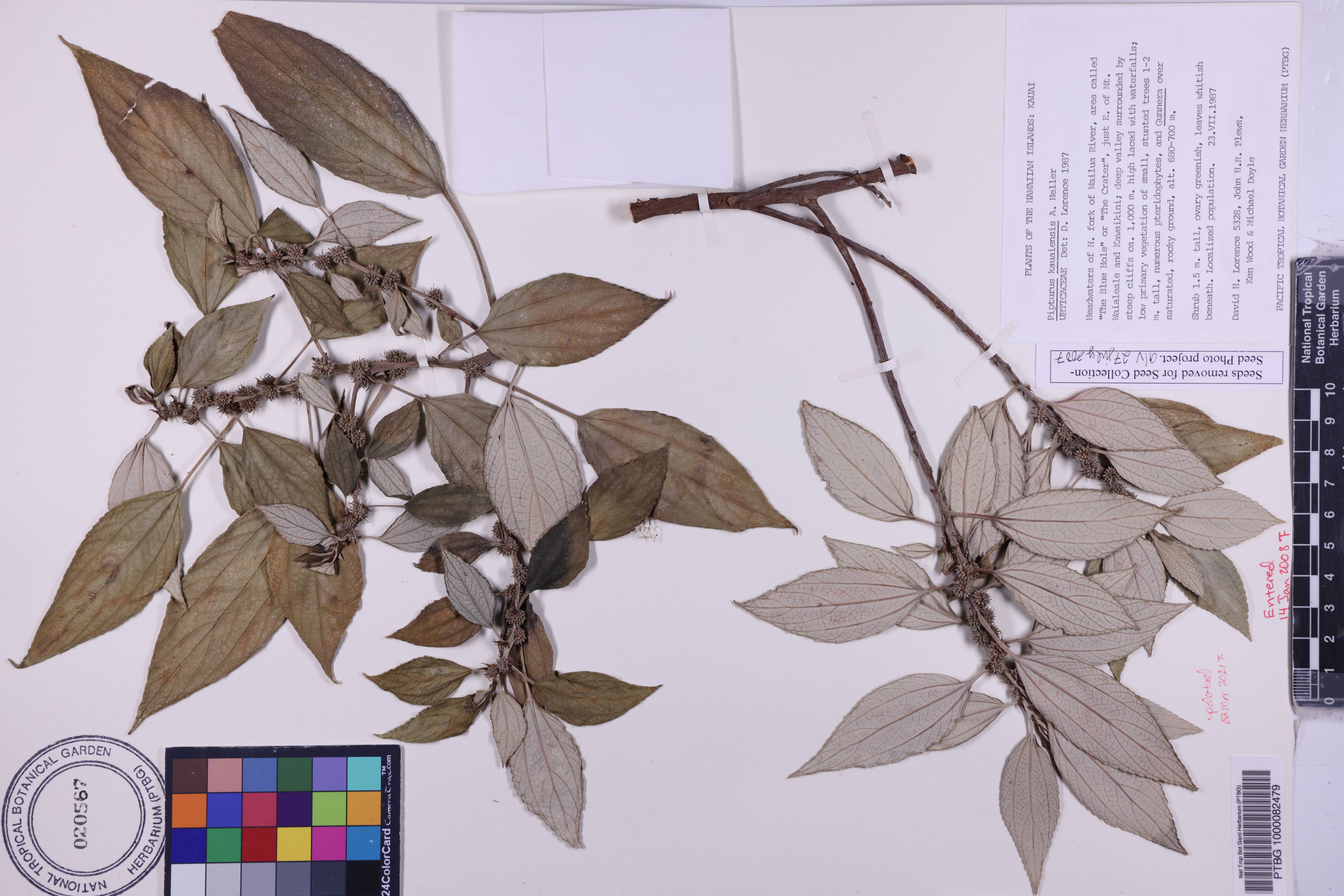 Shrub 1.5 m tall, ovary greenish, leaves whitish beneath. Localized population.