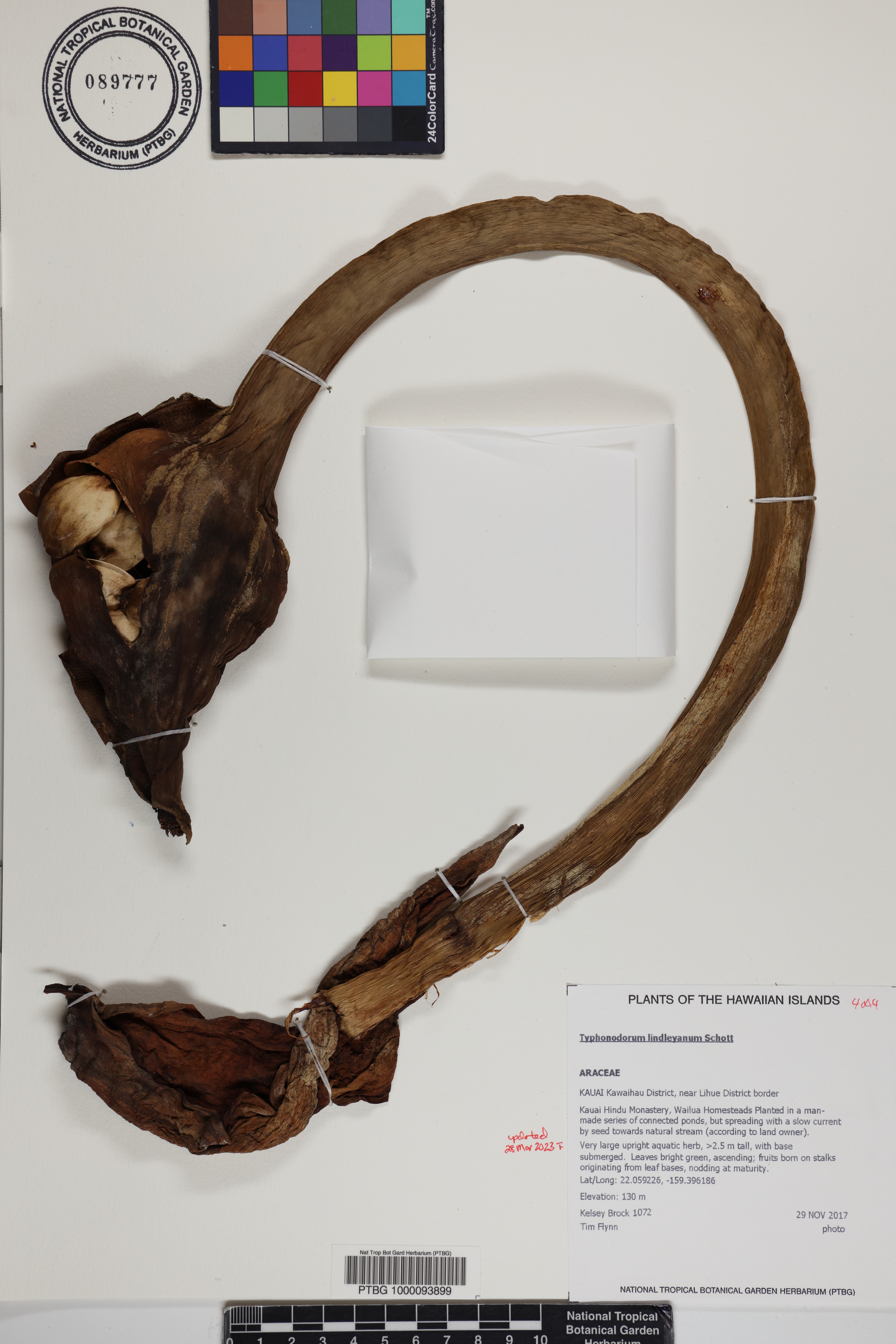 Very large upright aquatic herb, >2.5 m tall, with base submerged. Leaves bright green, ascending; fruits born on stalks originating from leaf bases, nodding at maturity.