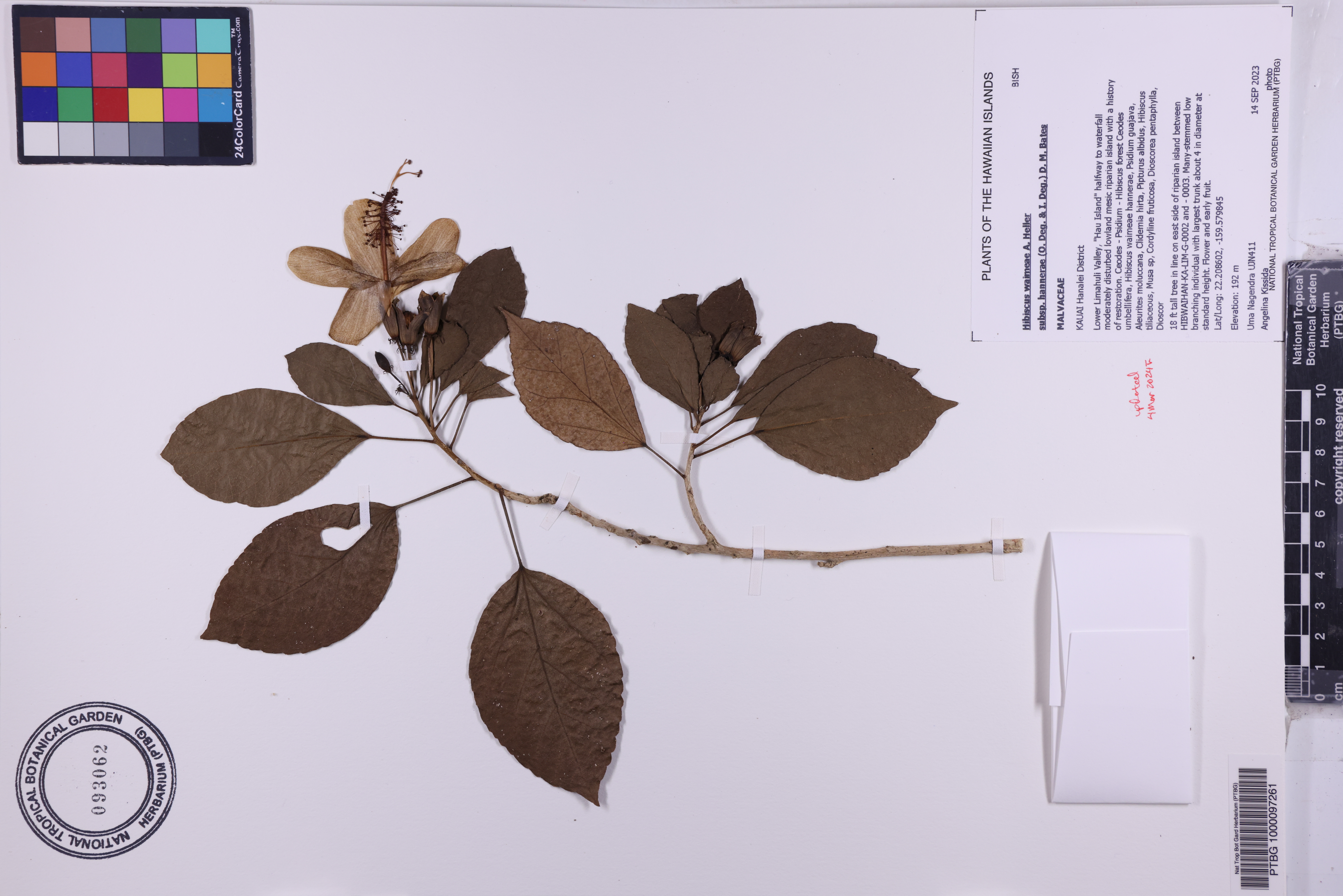 Ceodes umbellifera, Hibiscus waimeae hannerae, Psidium guajava, Aleurites moluccana, Clidemia hirta, Pipturus albidus, Hibiscus tiliaceous, Musa sp, Cordyline fruticosa, Dioscorea pentaphylla, Dioscorea bulbifera, Hedychium gardnerianum