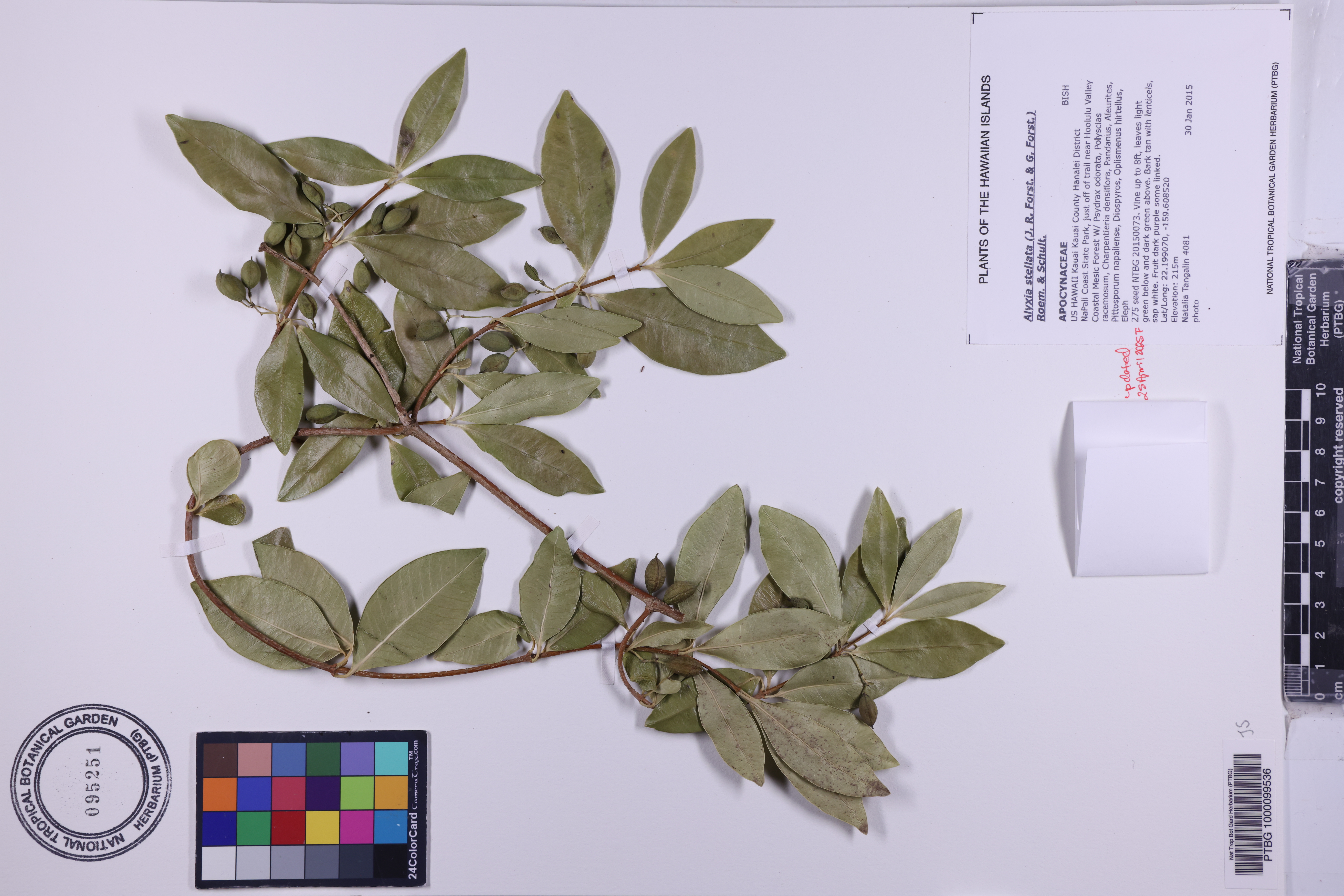 275 seed NTBG 20150073. Vine up to 8ft, leaves light green below and dark green above. Bark tan with lenticels, sap white. Fruit dark purple some linked.