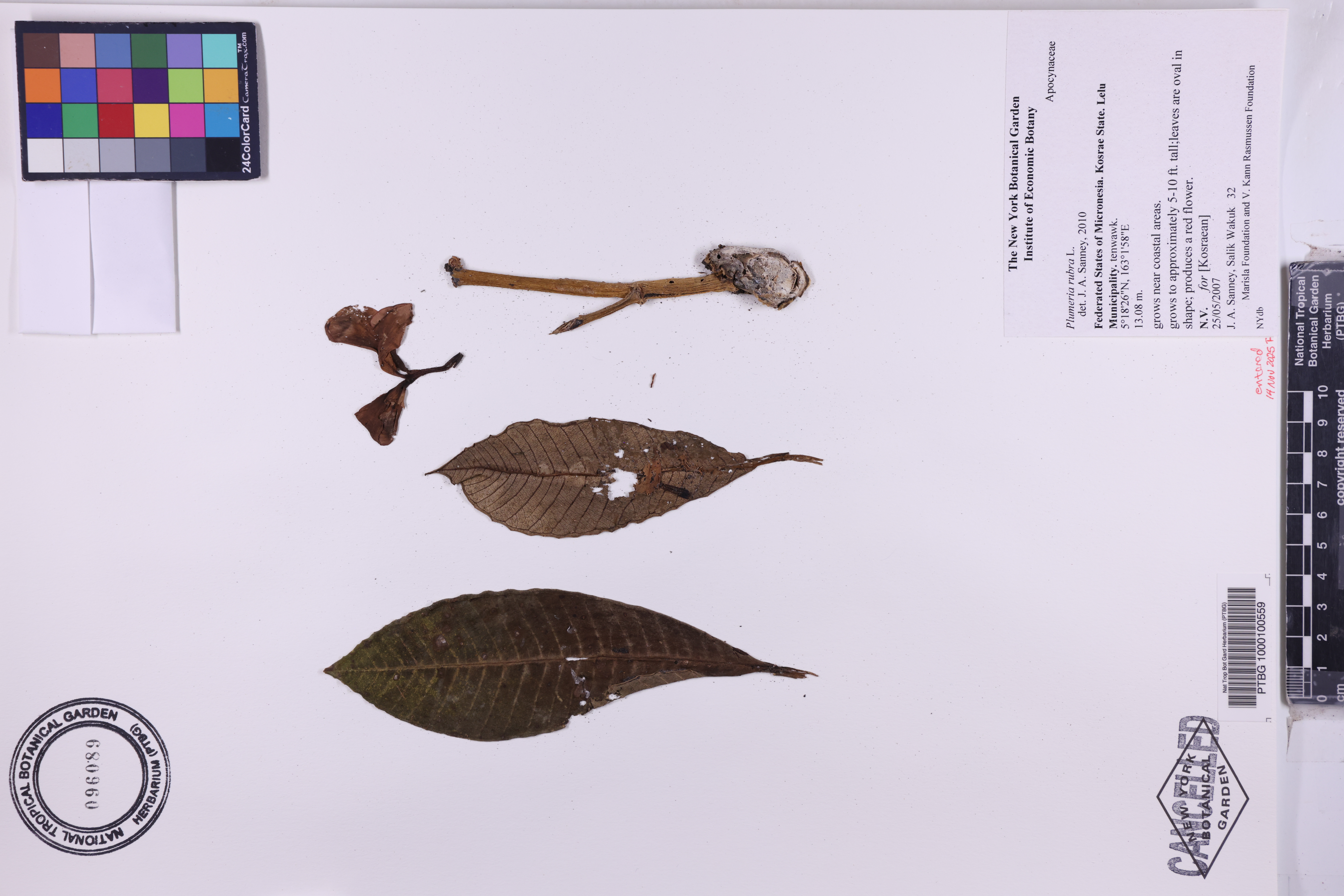Grows to approximately 5-10 ft tall; leaves are oval in shape; produces a red flower.