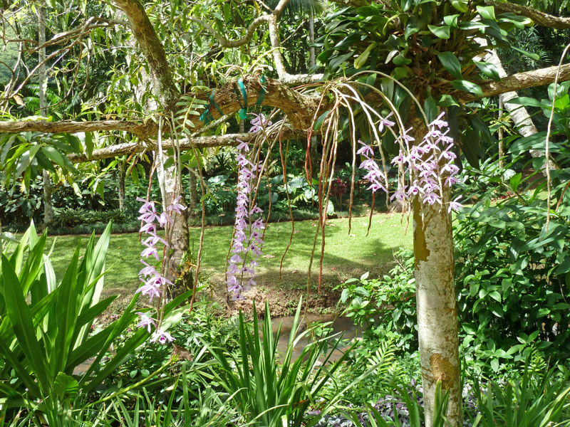 Dendrobium orchids are often said to be either “deciduous” or evergreen. “Deciduous” dendrobiums are adapted to monsoonal climates. Periods of high water availability stimulate leaf production and vegetative growth. Long dry periods when little water is available stimulate flower production in deciduous Dendrobium species. In addition, Dendrobium requires a period of low temperature which causes the plant to lose its leaves and, during dry months, stimulates flowering. In its native habitat, Dendrobium anosmum will tolerate temperatures as low as 50oF but is tolerant only to 60oF in cultivation.
