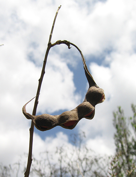 The showy red blossoms and bright coral seeds of Coralbean make this species a popular ornamental accent plant in sunny gardens. The flowers attract butterflies and hummingbirds with their sweet nectar and noticeable color. Coralbeans are also popular with birds and small wildlife who consume the large seeds in late summer and fall. Cattle and rabbits graze the young shoots and leaves.