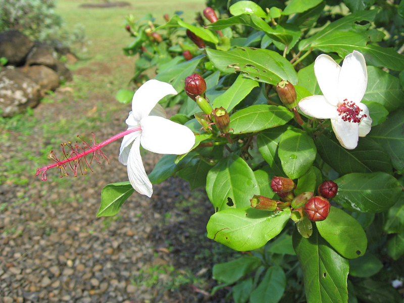 In old Hawai'i, Koki'o ke'oke'o were used primarily for decoration. People planted the shrubs close to their thatched huts and picked their flowers for ornament. Koki'o ke'oke'o grows well in cultivation. Around 1900 the Kaua'i species was recognized as a plant worthy of world-wide recognition. Seeds were sent to other tropical regions such as Florida and the West Indies, where it now brightens gardens as an "exotic, introduced" hibiscus. (Kepler, Angela K. 1984. Hawaiian Heritage Plants.) (Information for this species compiled and recorded by Camelia Cirnaru, NTBG Consultant.)