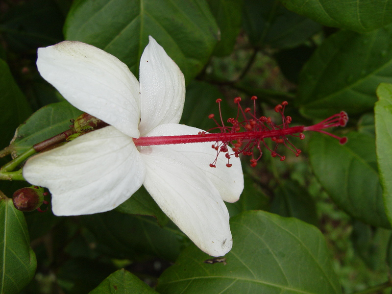 Hibiscus waimeae subsp. hannerae is an endemic, rare Hawaiian plant. It grows in the moist forests of Kaua'i from 800 to 3,900 feet. Unfortunately the pure species of Kauai White Hibiscus are all restricted to small pockets of forest and are becoming rare as years progress. Mentioned occasionally in ancient song and legend, Hawai'i's native white hibiscus are truly floral treasures, worthy of all protection. (Wagner,W.L., D.R. Herbst, and S.H. Sohmer. 1990. Manual of the Flowering Plants of Hawaii.) (Kepler, Angela K. 1984. Hawaiian Heritage Plants.)