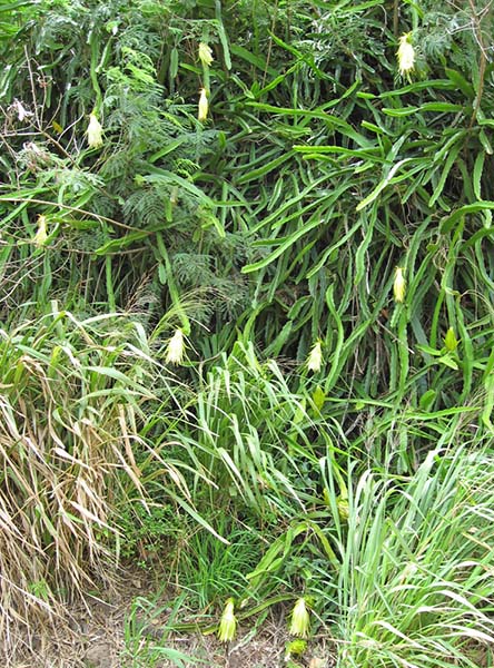 Hylocereus undatus is native to tropical deciduous forests in Mexico, the West Indies, Central America, and northern Southern America and is now widely distributed in cultivation throughout the world. The origin of the species is difficult to trace but it is thought that Native Americans moved this species extensively throughout the Americas. It was first introduced to Hawai‘i in 1830, it is now widespread in cultivation, and naturalized populations have become established in leeward regions of O‘ahu and Kaua‘i. (Valiente-Banuet, A., R. Santos Gally, M.C. Arizmendi, and A. Casas. 2007. Pollination biology of the hemiepiphytic cactus Hylocereus undatus in the Tehuacan Valley, Mexico. Journal of Arid Environmnets 68(1): 1-8.) (Staples, G. W. and D. R. Herbst. 2005. A Tropical Garden Flora: Plants cultivated in the Hawaiian Islands and other tropical places. Bishop Museum Press, Honolulu, Hawai’i.)