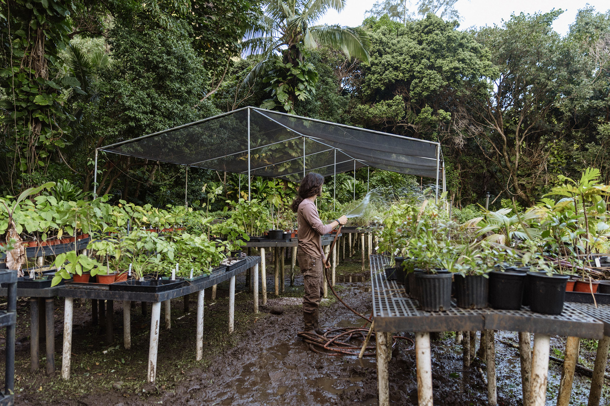Our horticulture team grows the plants for Limahuli’s restoration sites in the garden’s nursery. Cultivating the plants onsite offers the perfect growing conditions and supports biosecurity, as transporting plants across the island can inadvertently vector invasive pests.