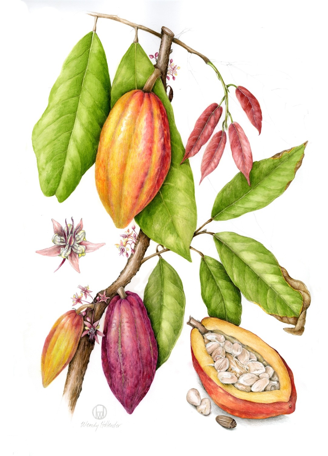 Did you know chocolate comes from a seed? The seeds of cacao, a tropical species native to the Amazon Basin, are used to make one of the world’s favorite foods. The seeds can also be turned into cocoa butter for cooking and moisturizers. The cacao plant prefers growing close to the equator as they need steady, steamy temperatures year round to produce fruit.