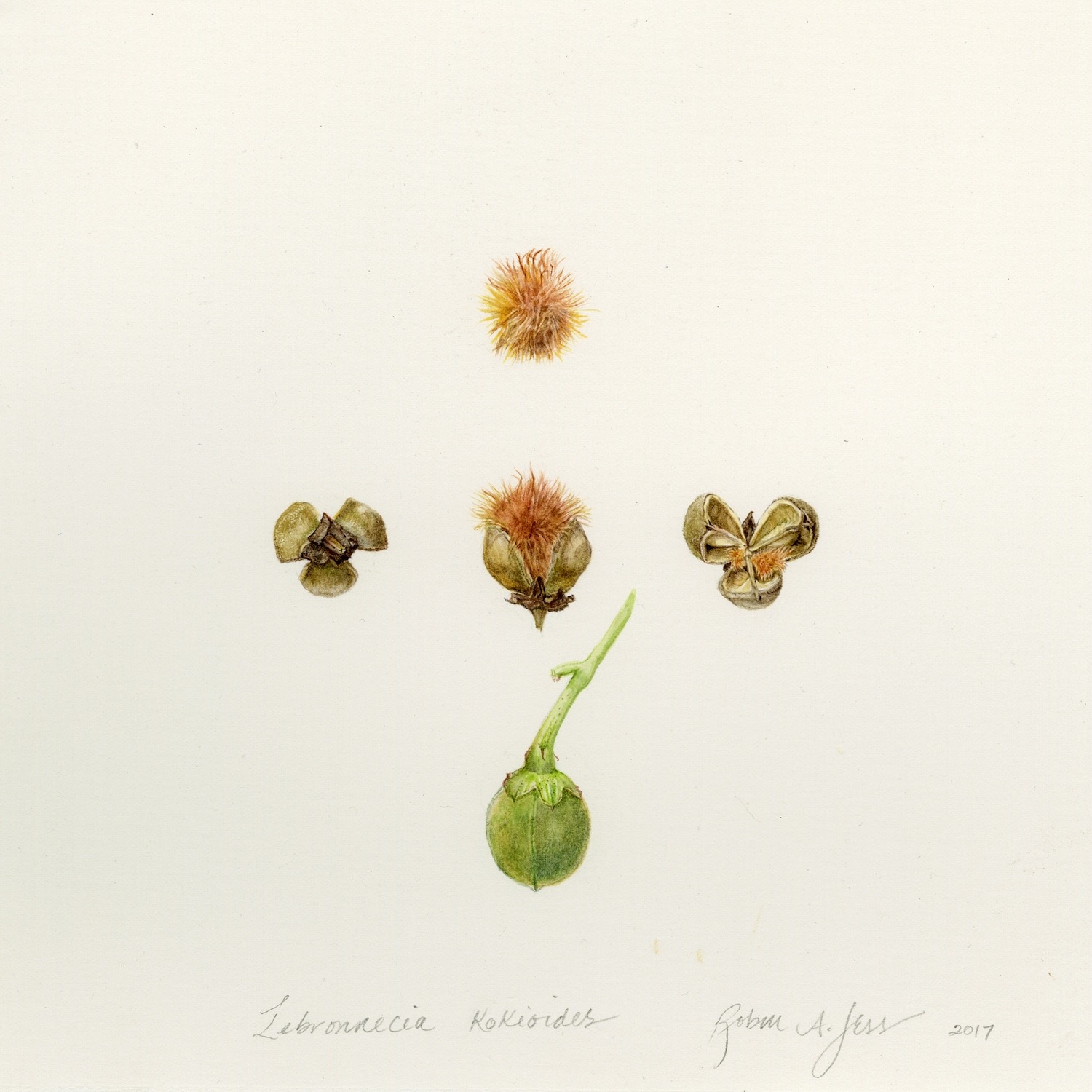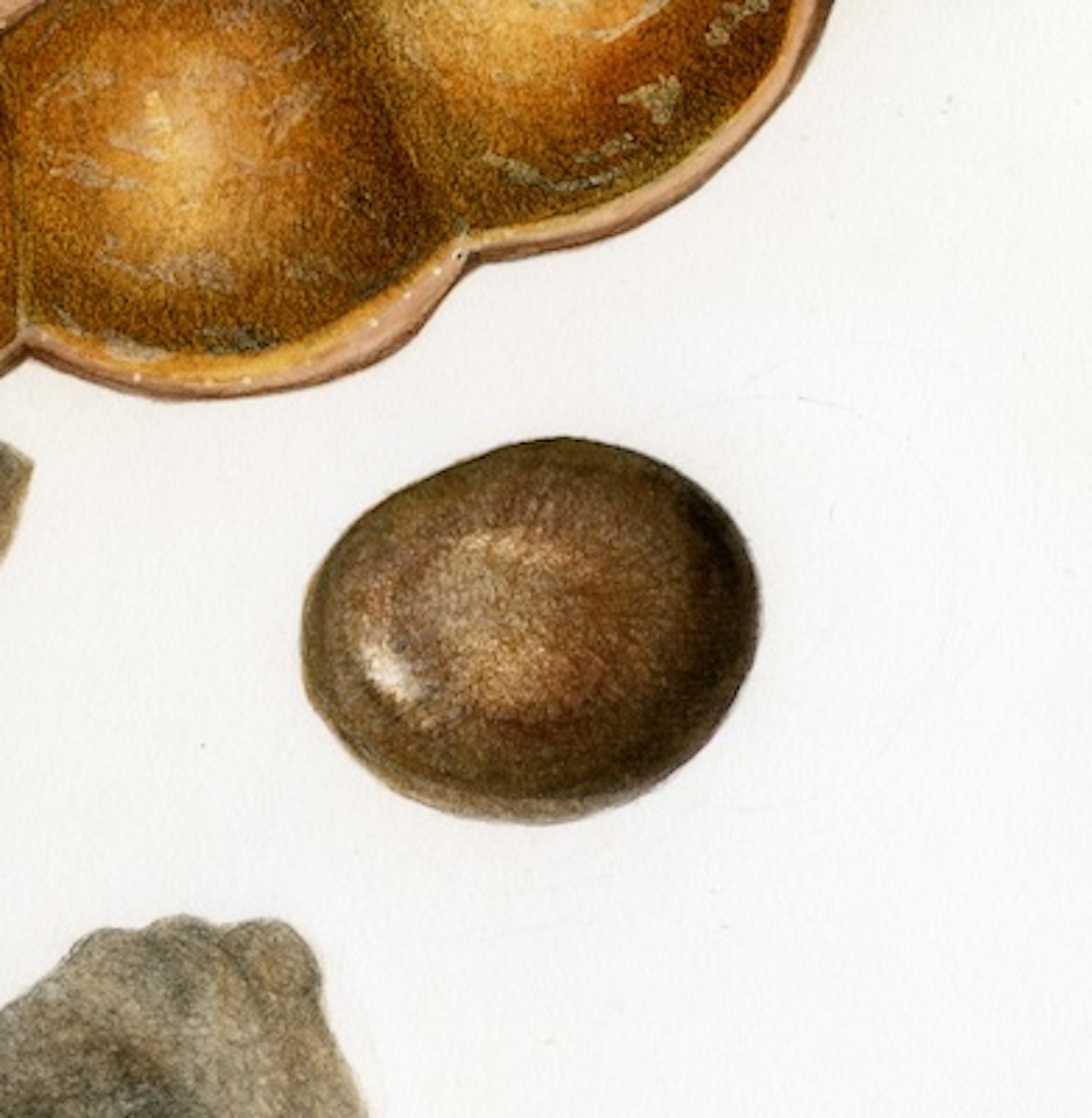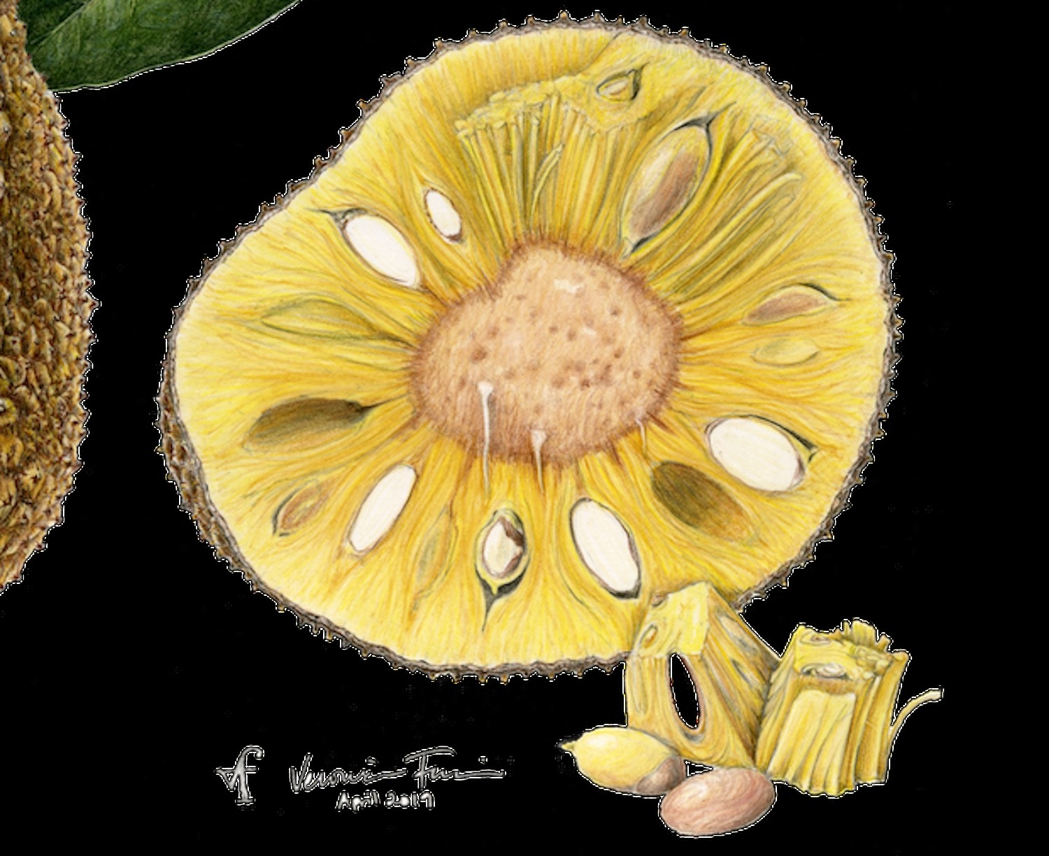 Seeds come in an incredible array of shapes, sizes, and forms, each with its own story to tell. In this photo gallery, we take a closer look at a selection of seeds—from Hawaiʻi’s endemic pua kala to jackfruit, cacao, and other tropical plants, as well as rare seeds preserved through conservation efforts. Each image is a close-up of seeds drawn by our NTBG Florilegium Society artists over the years, taken from detailed illustrations of the entire plant, and accompanied by photographs of the living plants themselves. Together, the illustrations and photos invite us to reflect on the beauty of plants and the essential role seeds play in their life stories.