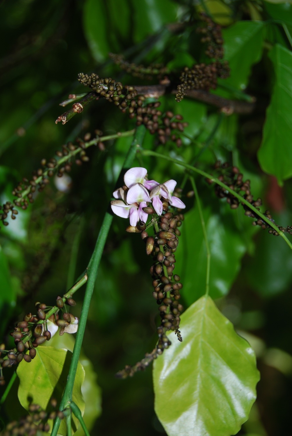 The bushwillow in the garden is originally from the Universidade Eduardo Mondlane in Mozambique but grows well here on Kauaʻi. In Afrikaans, the bushwillow is referred to as raasblaar, which translates to ʻnoisy leafʻ as the leaves rattle with the seeds inside in the wind.