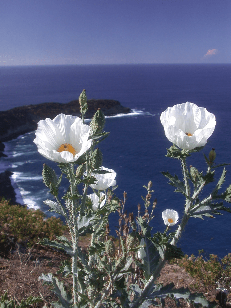 Pua kala is the only poppy endemic to Hawaiʻi. The prickly stem and pod that hold its seeds is a rarity — most Hawaiian native plants don’t have thorns, prickles, or other physical defenses. Pua kala is also one of the first flowers to come back after a wildfire.